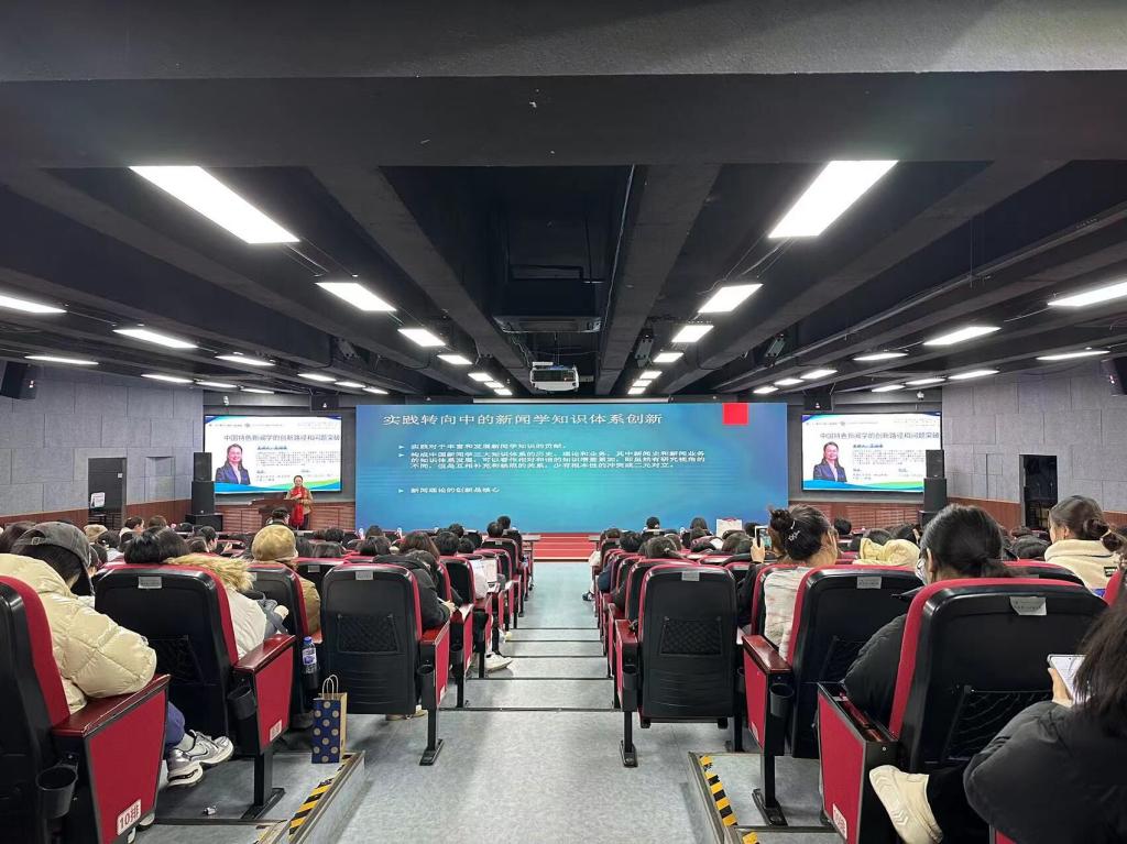 王教授强调,中国特色新闻学的创新路径需根植于中华优秀传统文化的沃土,同时积极吸收国际先进理念和技术,形成具有中国特色的新闻理论体系和话语体系。他通过一系列生动的案例分析,展示了在新闻报道中融入人文关怀、科技赋能的重要性,并鼓励在座师生勇于探索新闻实践的新模式,为构建更加健康、多元、开放的新闻生态贡献力量。