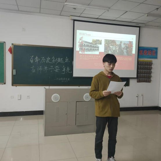 本期团日活动已接近尾声,主持人阐述了我党百年光辉历史所留下的深刻意义与历史价值,各位同学也纷纷上前表述自己对建党百年的感想。