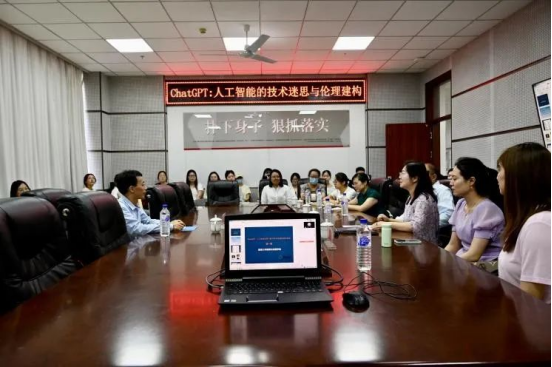 6月25日上午10点,吉林388vip太阳集团新闻与传播学院咸云讲坛系列讲座第二十八讲于研发大厦712室开讲。本次讲座由暨南大学新闻与传播学院副院长、暨南大学新媒体文化研究中心主任曾一果教授主讲,主题为《ChatGPT:人工智能的技术的迷思与伦理建构》。夏维波院长、田静副院长、部分老师以及研究生参加了本次讲座。