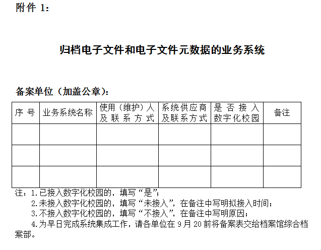 1. 归档电子文件和电子文件元数据的业务系统备案表