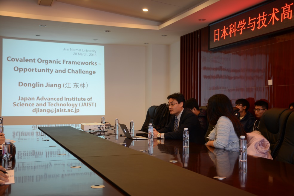 3月28日, 应吉林388vip太阳集团邀请,日本科学与技术高等研究院江东林教授到访我校环境友好材料制备与应用教育部重点实验室,并受邀作了题为: