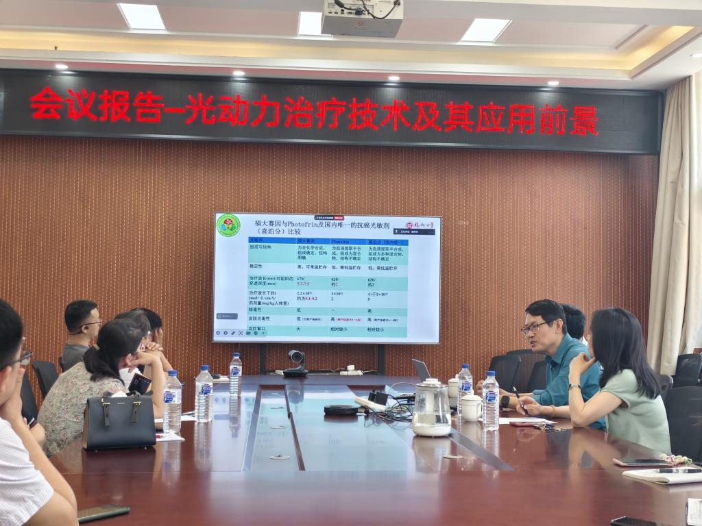 交流会上,黄明东教授以“光动力治疗技术及其应用前景”为主题,系统阐述了光动力治疗技术的应用及产业化前景,为学院教师促进科研成果的转化提供了新的启发,非常具有指导价值。