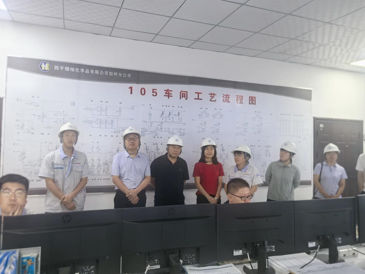 在四平精细化学品有限公司总经理薛亮的陪同下,调研团队先后参观了厂区、化验中心及医药中间体105车间控制室。技术人员详细介绍了生产工艺流程,并重点展示了芬顿氧化污水处理技术。该技术采用先进的氧化降解工艺,有效处理高浓度有机废水,体现了企业在环保领域的创新实践。