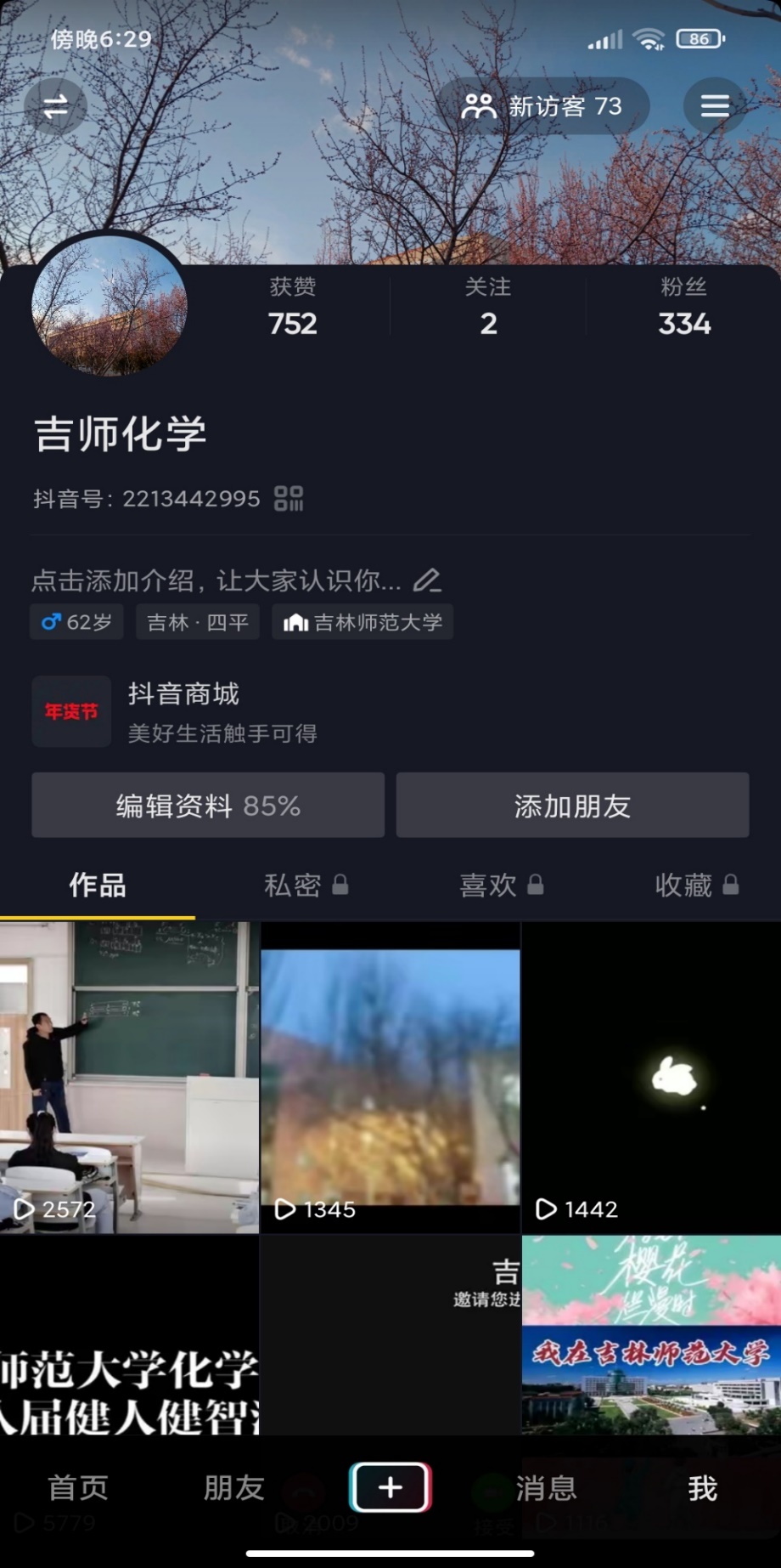 时光荏苒,我们网络通讯站运营吉师化学抖音已有一年多,到目前为止,在学院老师的悉心指导和团学联的大力支持、鼎力协助下,我们部门运营的吉师化学抖音号已经发布了13个视频,共有粉丝334人,总播放量达24900次。以下是对吉师化学抖音号运营工作的情况介绍: