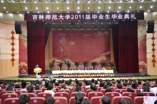 张伯军作了重要讲话。他代表学校,向圆满完成学业的2011届毕业生表示热烈的祝贺!向辛勤培育学生、为学校发展做出贡献的老师致以崇高的敬意!他代表学校向2011届毕业生提出三点希望。第一,希望同学们秉承“好学近知,力行近仁”的校训精神。他说,“好学近知,力行近仁”是我校的校训,是每一位吉林388vip太阳集团师生的精神坐标。“好学”是事业之基,是生存之本,是适应与引领社会的客观要求。希望同学们在今后的人生旅途上,终身牢记并秉承“好学近知,力行近仁”的校训精神,把它作为自己永远的人生灯塔和精神追求,始终保持对知识渴求的欲望,在繁杂信息的冲压下,把握自己,从容应对,从而赢得社会的认同,成就自己的事业。第二,希望同学们终身弘扬“吉师”学子“朴实、踏实、务实、现实”的优秀品质,这也是一个人成就事业的基本要求。“朴实”是一种品质,外化表现为淳朴、真爱、诚信、稳重,是社会需求人才的特定指标;“踏实”是一种作风,体现在勤恳、守业、实在、尽职,是未来工作的基本要求;“务实”是一种态度,表现为实事求是,从实际出发;“现实”是一种成熟的理智。希望同学们做到主动性适应和创造性顺应,将个人的素质、能力、气质和性格与社会实现较好的融合,形成良性的互动与协调,为社会发展做出更大的贡献。第三,希望同学们终身体现“求实创新,开拓进取”的“吉师”风格。他说,求实与创新是一个永恒的话题,也是人类社会在不断进化和演绎过程中始终探究与追逐的足迹。“求实”是铸就你事业成功的前提,是“求”做人之“真”,“求”做事之“实”。“创新”是铸就你事业辉煌的动力,面对经济全球化、文化多元化和科学技术飞速发展的今天,你们必须开拓进取、不断创新。他希望同学们以自强不息的顽强意志面对人生的机遇与挑战,以豁达的心态面对人生的高潮与低谷,以宽容的性情对待人生的失落与坎坷,以永不言败的心态面对困难与挫折,以开拓进取的精神不断追求卓越,成为引领时代的强者。最后,他希望同学们将“好学近知,力行近仁”的校训精神深深植根于自己的思想灵魂之中;“朴实、踏实、务实、现实”的优秀品质锻铸成自己人格标准和行为特质;“求实创新,开拓进取”的风格打造成自己人生的主旋律和价值追求。以学识和才智奉献社会,以精神和品格影响他人,为母校增光添彩。