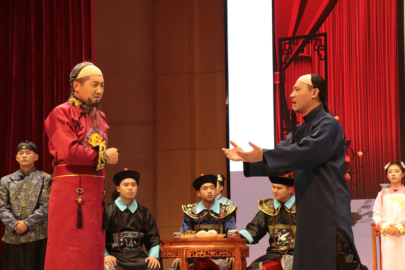 演出现场清代风格的背景、道具和华美的服饰体现了清代满族的历史风韵;音乐方面,以满族民歌为基础加以发展与变形,塑造满族声腔之美,突出了满族音乐特色;通过动静对比,形成戏剧冲突,独唱、对唱、合唱等形式丰富艺术效果。与会专家学者对整体的艺术效果以及自觉呈现的地域文化特色给予高度赞扬,认为在高校能够排演出一部原创的歌剧作品精神可嘉,这种尝试值得提倡,尤其与提高大学生的艺术实践能力紧密结合,更有实际意义。从思想层面看,在“不忘初心、牢记使命”主题教育深入推进之时,在全党全国各族人民深入学习宣传贯彻党的十九届四中全会精神之际,这部以历史故事为题材的、以反腐倡廉为主题的现代小歌剧《君子之交》能给观众更多的启示和警醒,与当今时代主旋律高度契合,具有很强的现实意义和教育作用。