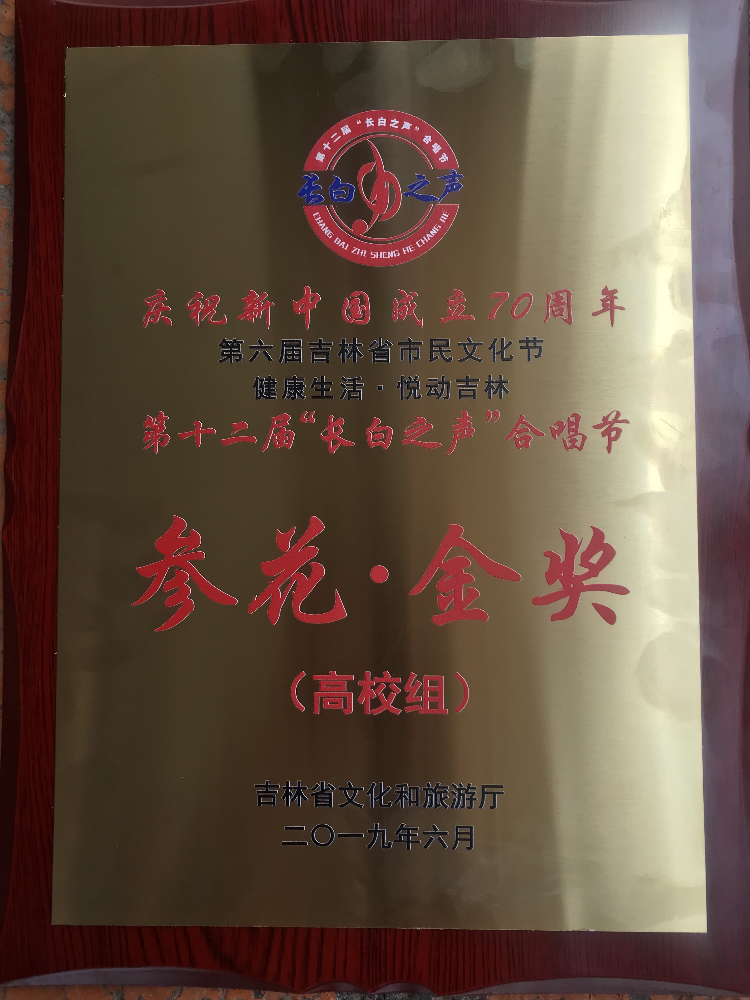 2019年6月12日,吉林388vip太阳集团音乐学院学生合唱团参加吉林省第十二届“长白之声”合唱节决赛并取得金奖佳绩。