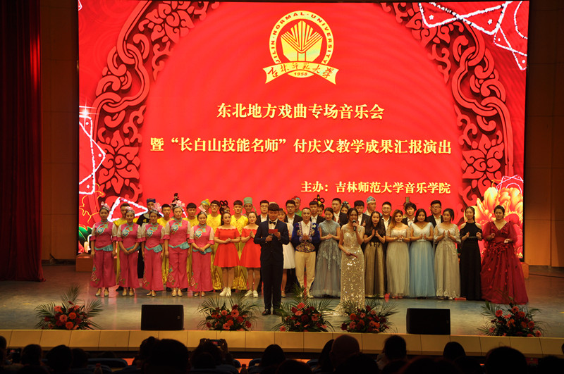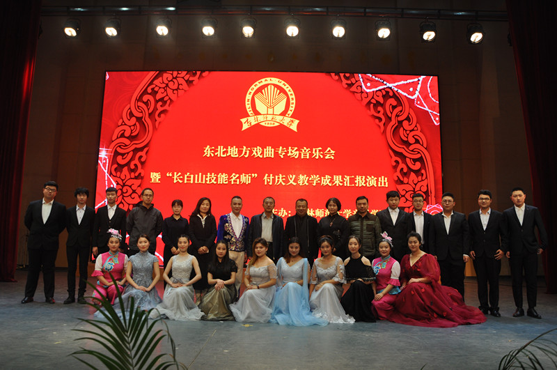2018年11月14日晚,由音乐学院主办的东北地方戏曲专场音乐会暨“长白山技能名师”付庆义教学成果汇报演出在学校音乐厅举行,校党委副书记、校长杨景海,校党委副书记祖国华,校纪委书记侯奎岩及党(校)办主任单永新、宣传部部长张洪峰,梨树县文化广电新闻出版局副局长、吉林省梨树县地方戏曲剧团有限责任公司董事长赵丹丹,我院党总支书记陈明宏、院长胡晓伟、副院长任会平和颜铁军、副书记楚学娟与全院师生一同观看了演出。