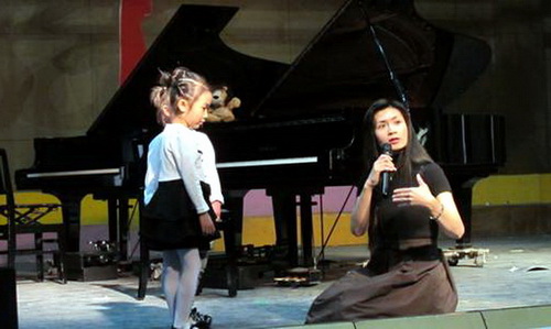 讲座一开始,柯雅雯女士就用简短幽默的话语,夸张的肢体语言,极大活跃了全场的气氛。整场讲座进行中,柯女士不仅用简单的语言向广大师生介绍了铃木教学法,而且用更多形象幽默的肢体语言和现场对幼儿教学的示范讲解,深入浅出地使大家了解了铃木教学法。铃木教学法不拘泥于传统的音乐教育理念,扩宽了我们的音乐教育理念。