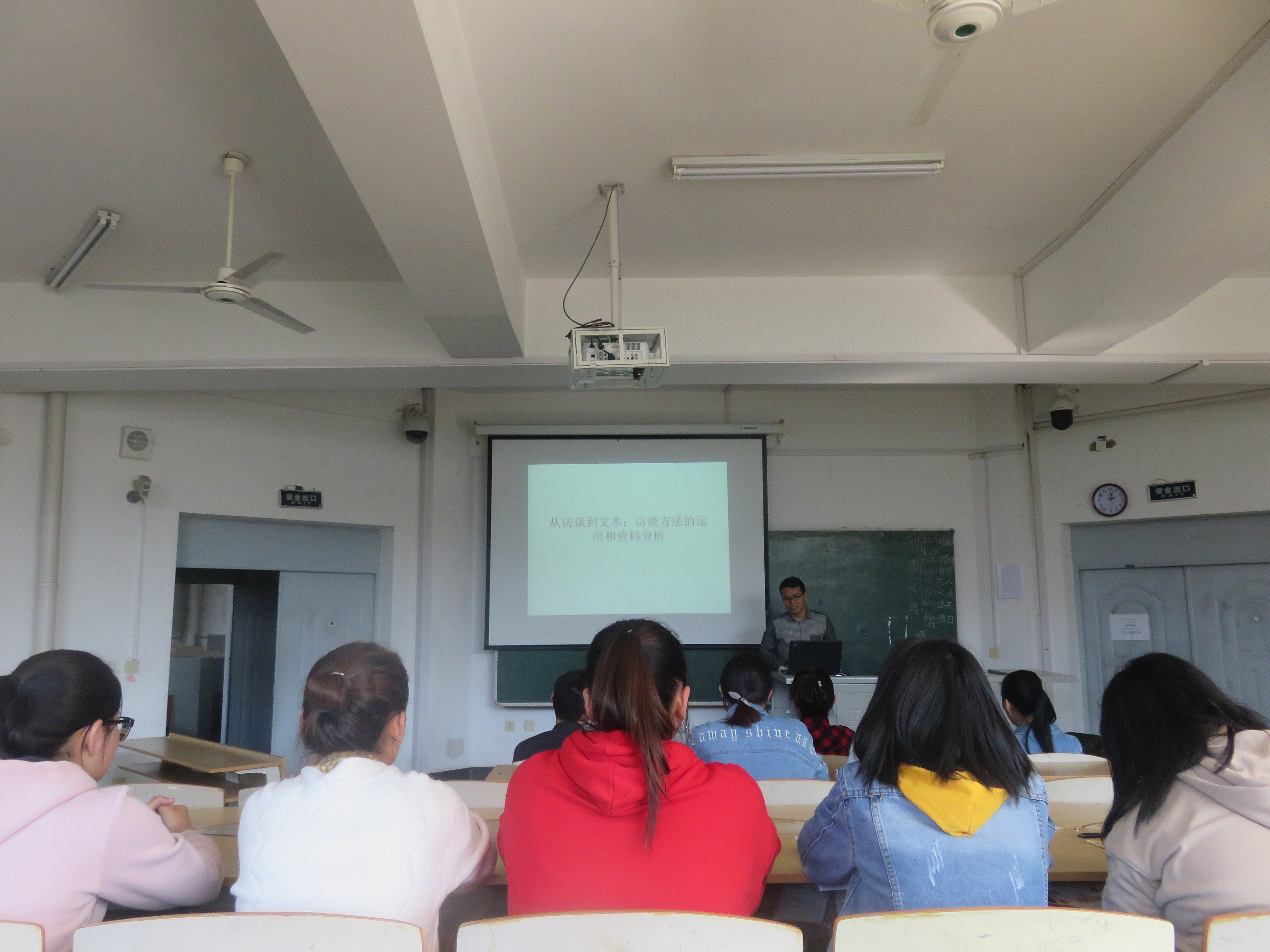 9月26日下午在田家炳教育书院10313教室,教育学系系主任时松博士以《质性访谈法的实施与数据编码》为题拉开了此次系列学术交流活动的序幕。此次系列活动的负责人教师教育基地办公室主任王立峰博士,以及我院王泽德副教授、李虹博士、李卓博士和部分学生参与了本次学术活动。