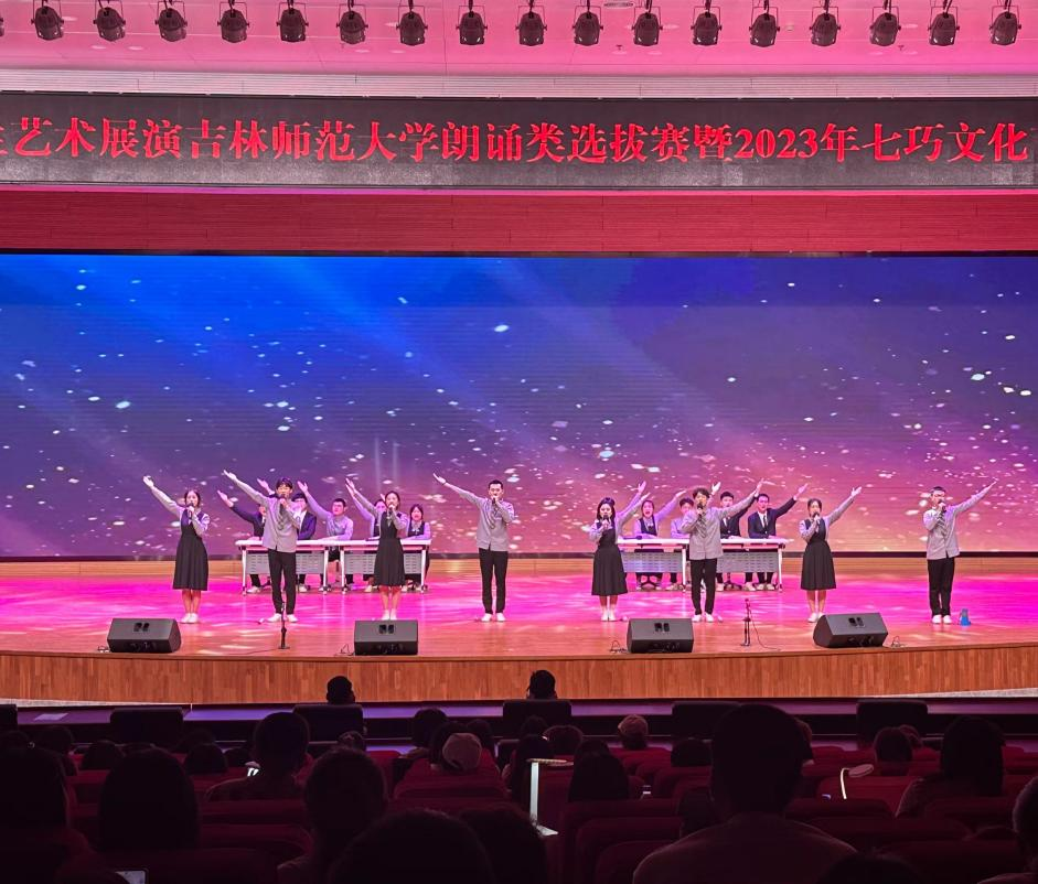 2023年6月7日下午,全国第七届大学生艺术展演吉林388vip太阳集团朗诵类选拔赛暨2023年七巧文化节朗诵专场展演在双实中心千人报告厅拉开帷幕。经过激烈角逐,我院选送的作品《我以青春颂吉师》在全校十五支代表队中脱颖而出,荣获等奖。