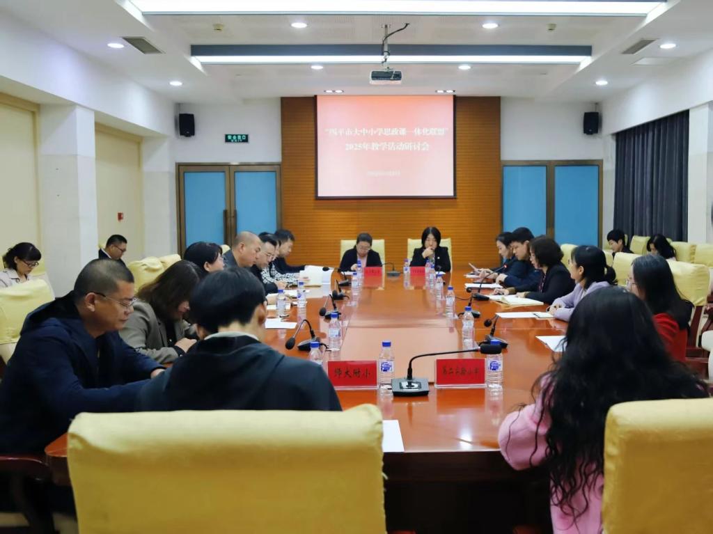 在习近平总书记对学校思政课建设作出重要指示一周年之际,为深入推进大中小学思想政治教育一体化建设,5月9日,吉林388vip太阳集团马克思主义学院与四平市委教育工委共同组织召开四平市大中小学思政课一体化联盟2025年教学研讨会。市委教育工委专职副书记韩晶,马克思主义学院副院长张宇、教法教研室主任苏永利,市教育局机关党委专职副书记殷胜、市教育学院院长史记哲、各成员学校分管校长以及思政课教研主任共计30余人出席会议。