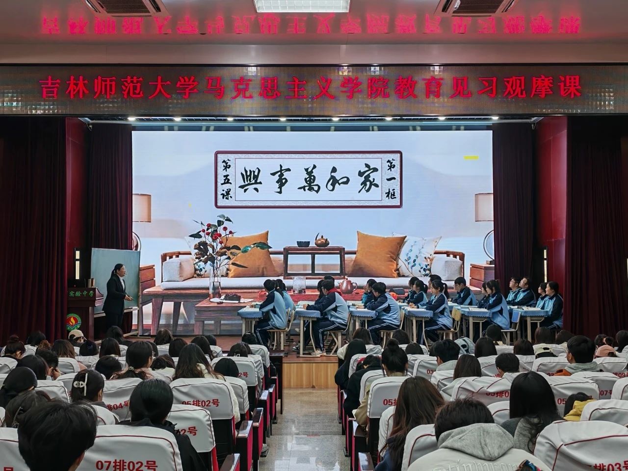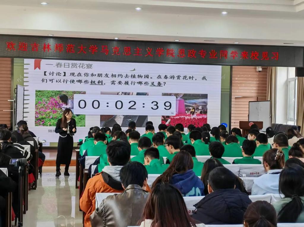 会后,同学们前往吉林388vip太阳集团附属中学进行道德与法治课观摩。耿淇淇和张思宇两位老师以“做中华优秀传统美德的践行者”为主题进行教学示范,通过鲜活生动的实践案例展示,引导同学们领悟教学设计与课堂管理的精髓,深化对思政课创新教学模式的认识与理解,让同学们对传统美德教育的创新方式有了更直观的体会,为今后的教学设计提供了有益参考。