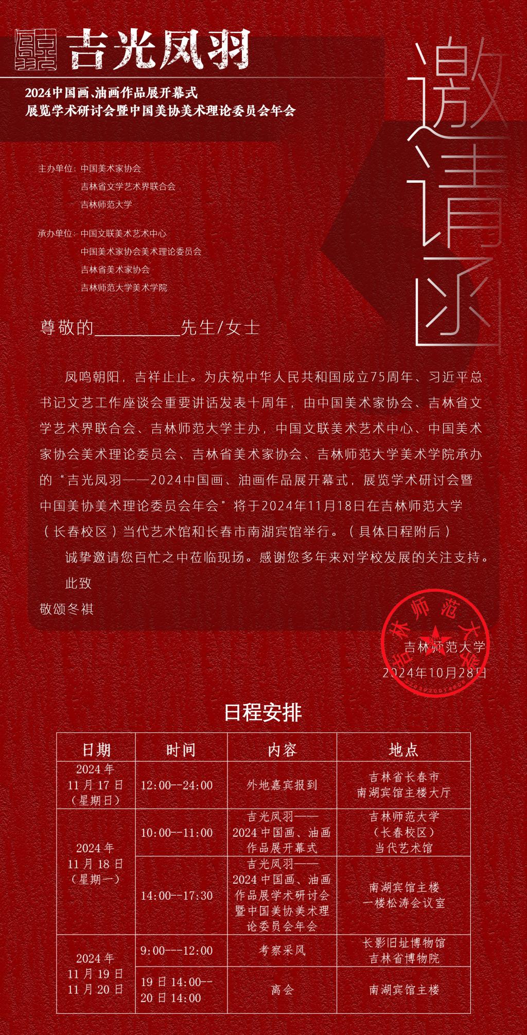 吉师报道:吉光凤羽——2024中国画、油画作品展开幕式、展览学术研讨会暨中国美协美术理论委员会年会即将启航,敬请期待