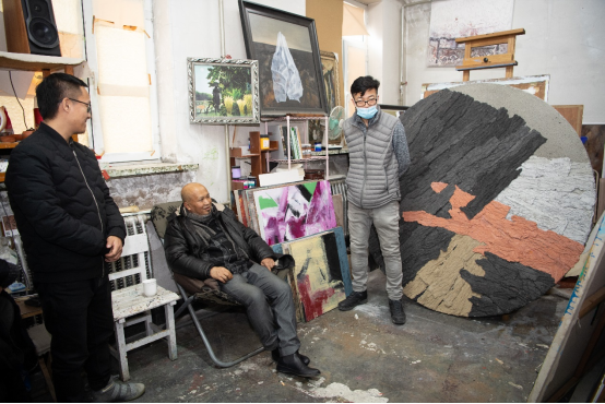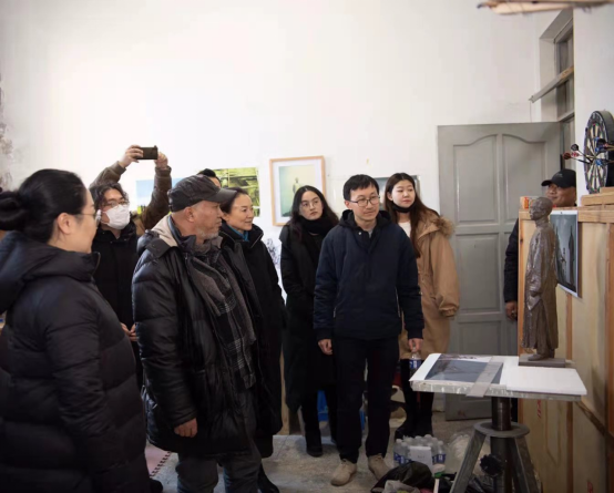 2020年12月21日下午,东北388vip太阳集团美术学院教授委员会主任、博士生导师,中国美术家协会综合材料艺委会委员宋学智教授莅临我院,走访教师工作室,结合教师近期作品和创作小稿,给予具体建议与指导。四平市美术馆王小清馆长及馆内青年艺术家同行交流。