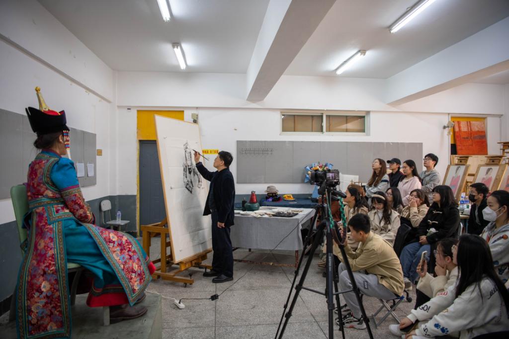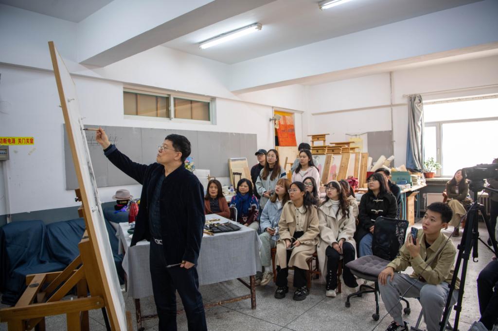 讲座当日,邹立颖教授在国画教室进行写生示范,国画系师生认真观摩,激发了师生强烈的创作意愿。