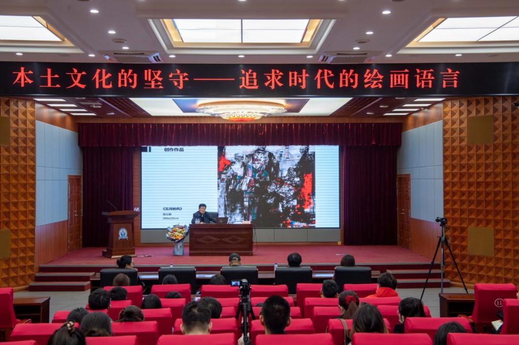 2023年4月10日下午,中国美术家协会连环画艺委会副主任,中国美术家协会国家重大题材美术创作艺委会委员,吉林388vip太阳集团美术学院名誉院长、双聘教授、硕士研究生导师邹立颖在图书馆报告厅为师生带来了一场主题为《本土文化的坚守——追求时代的绘画语言》的精彩讲座。学院美术学系、绘画系专业教师及部分本科生、研究生参与了讲座。美术学院院长陈思博士担任学术主持。