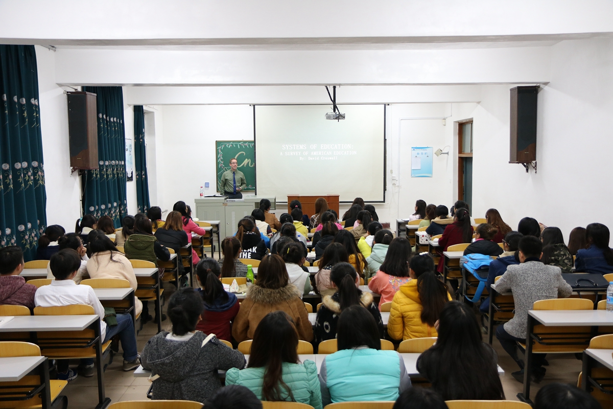 外籍教师David的讲座内容丰富,氛围轻松,使在场的师生对美国的教育体系有了一个更全方面的了解。