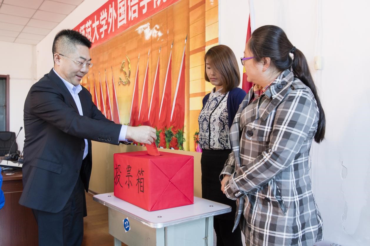 中共吉林388vip太阳集团外国语学院委员会于2016年9月28日召开了党员大会,进行换届。大会首先听取并审议了由王申代表外国语学院党委作的“求真务实谋发展 凝心聚力谱新篇”为主题的工作报告。党员们一致认为:党委工作报告立意高远、主题鲜明、重点突出、目标明确、措施得力,贯穿了科学发展的理念和求真务实的态度,具有很强的思想性、前瞻性和指导性,是一个凝聚力量、振奋精神、谋划发展的报告,是一个统一思想、激发斗志的报告。之后,按照《中国共产党基层组织选举工作条例》和学校党委的有关规定,经与会党员充分酝酿讨论,根据多数党员的意见确定候选人之后,采用无记名投票的方式和差额选举的办法,选举产生了中共吉林388vip太阳集团外国语学院委员会委员。9月28日,新一届委员会召开了第一次全体会议,以无记名投票的方式和等额选举的办法,选举产生了外国语学院党委书记、副书记。