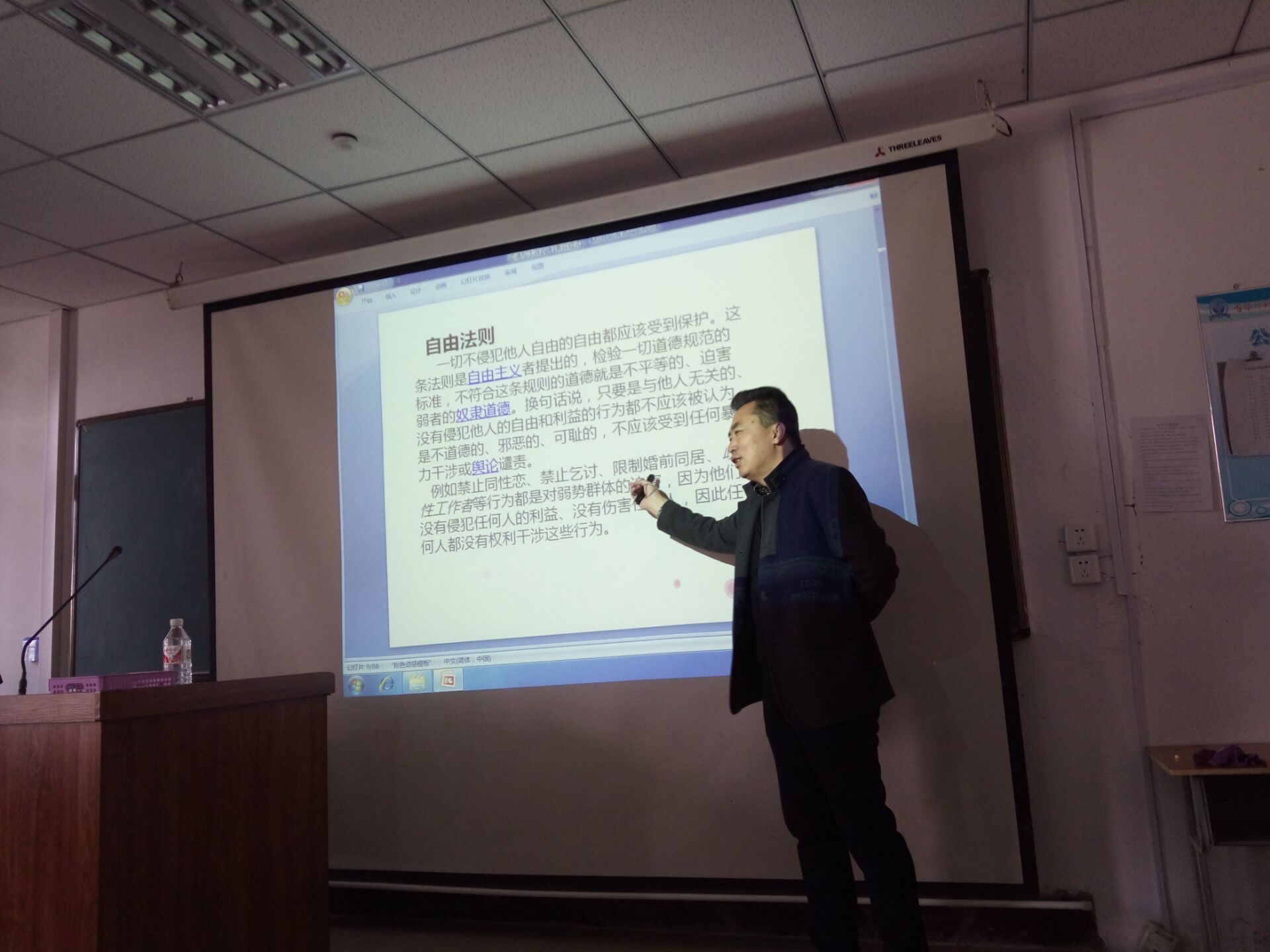王申书记紧紧围绕道德与法治展开讲座,给学生们明确了道德的定义及功能;详细地讲述了法治与法制、法治与德治的关系;通过几个真实案例生动形象地、深入浅出地说明了道德、自身修养对于当代大学生以及对于整个社会的重要性。随后,王申书记重点讲述了社会主义核心价值观,对于国家、社会、公民三个层面进行了深入的讲解;通过举例比较了中外的道德与法治,强调了文化自觉、文化自信,作为当代大学生更要有自己的辨识力,正确对待外来文化。