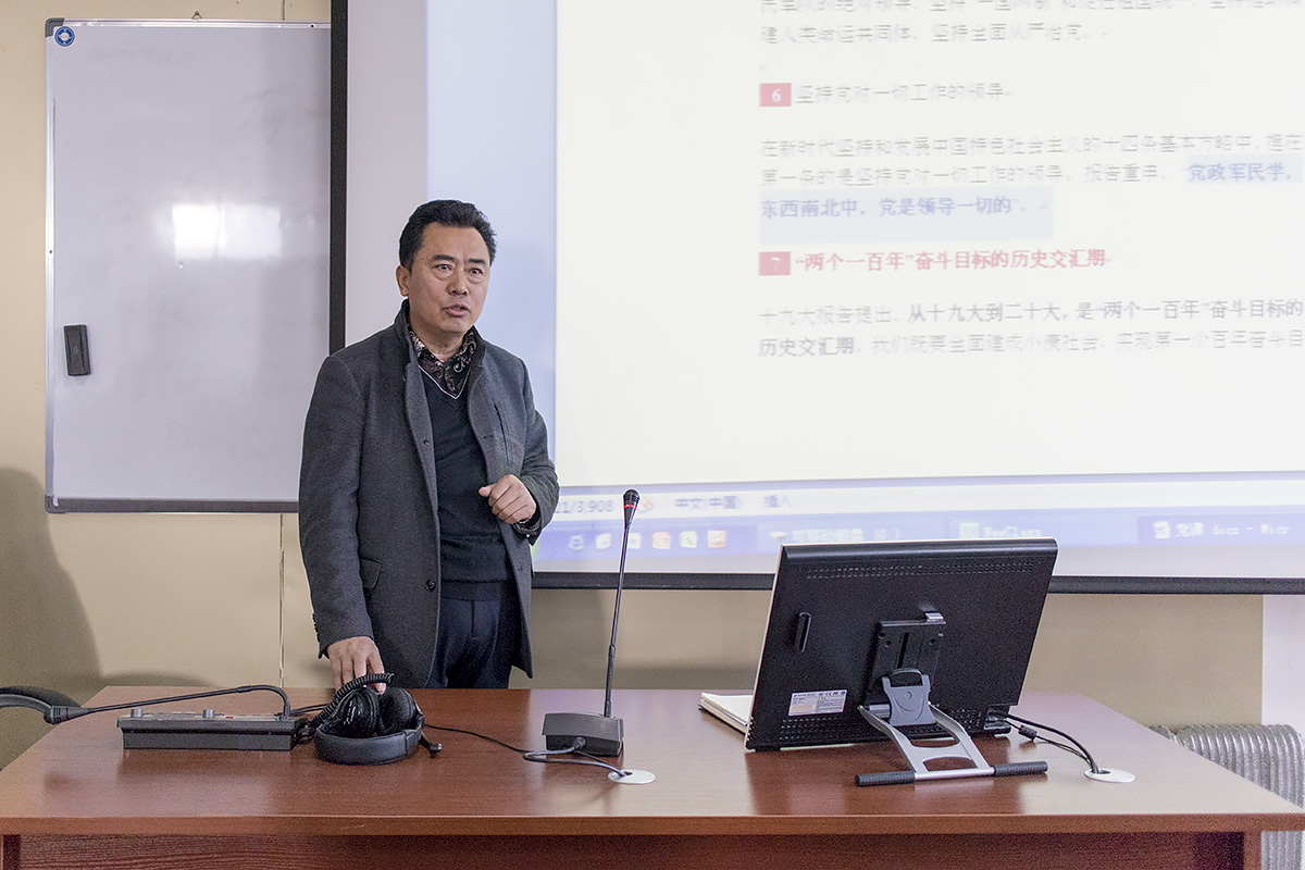 本次党课由学院党委书记王申主讲。他对十九大报告中提出的40个新提法、新举措进行全方位的解读。在解读的同时他用生动的例子深入分析了十九大报告中与我们高等教育密切相关的几个方面。他强调,十九大是新的历史时期召开的一次十分重要的一次盛会,对于全党、全国、全民族都是一个很好的指引,希望全体教师在党的十九大精神的指引下,结合我们实际做好青年大学生的思想引领、学业教育工作。