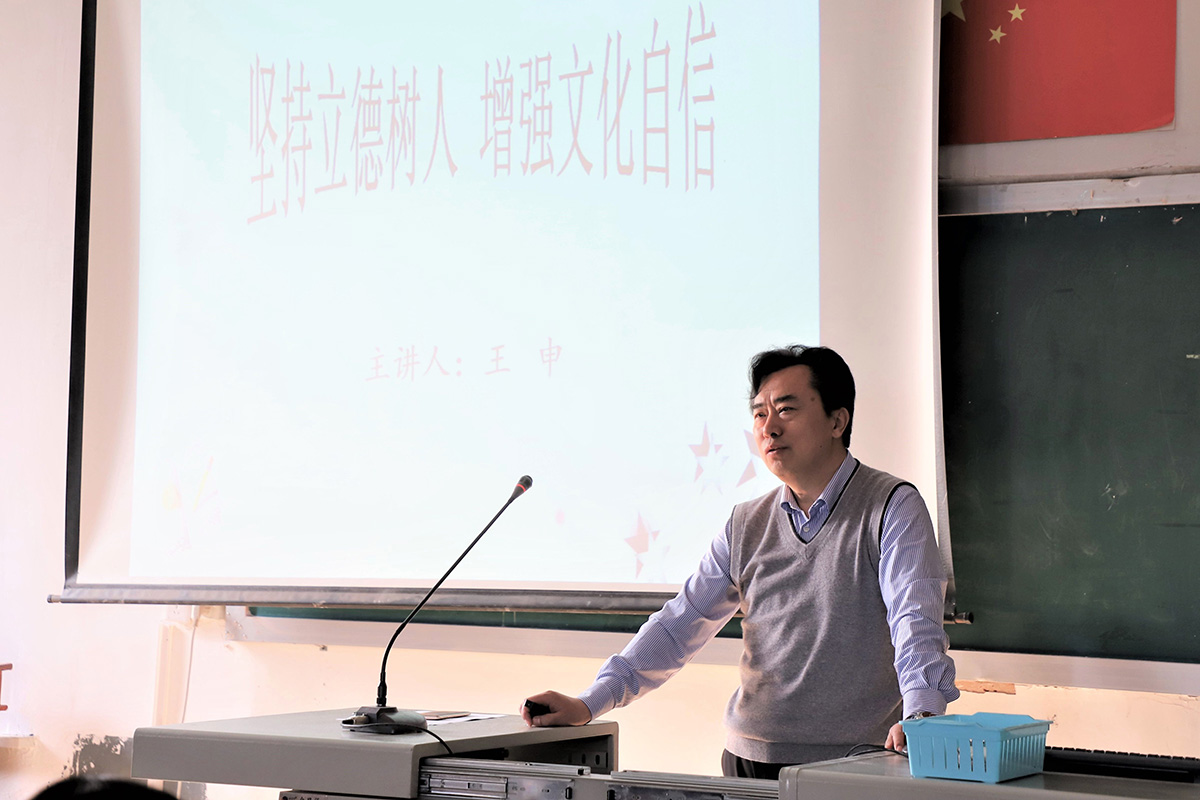 王申主要从弘扬传统文化、加强道德建设、提高师德修养和增强法制意识四个维度进行讲解,从传统文化入手,着重强调了优秀文化的重要性,并结合实际对如何弘扬优秀传统文化进行了阐述。结合党的两会精神阐明了掌握方法强于知识本身,要求大家要在新中国成立七十周年之际,坚决拥护党的领导,不断增强党性观念,努力为建设社会主义现代化强国而不懈奋斗。