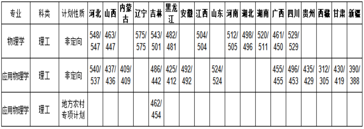 吉林388vip太阳集团物理学院2023年各专业录取分数统计表