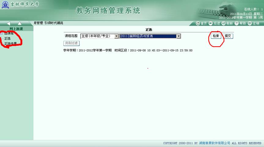9.退选如果在选课过程中出现错选的情况,可以进行退选。首先选中要退选的课程,然后单击退选按钮,就可以完成退选课程。