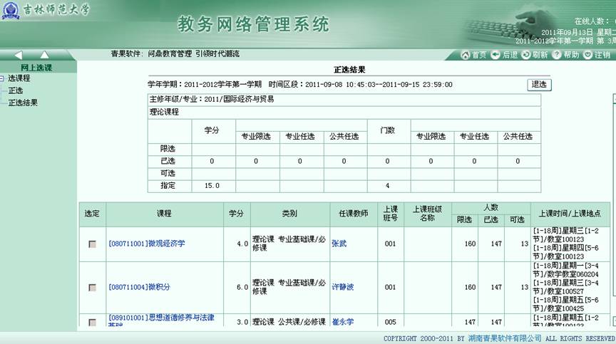 8.查询选课结果,单击选课结果按钮,如下图所示