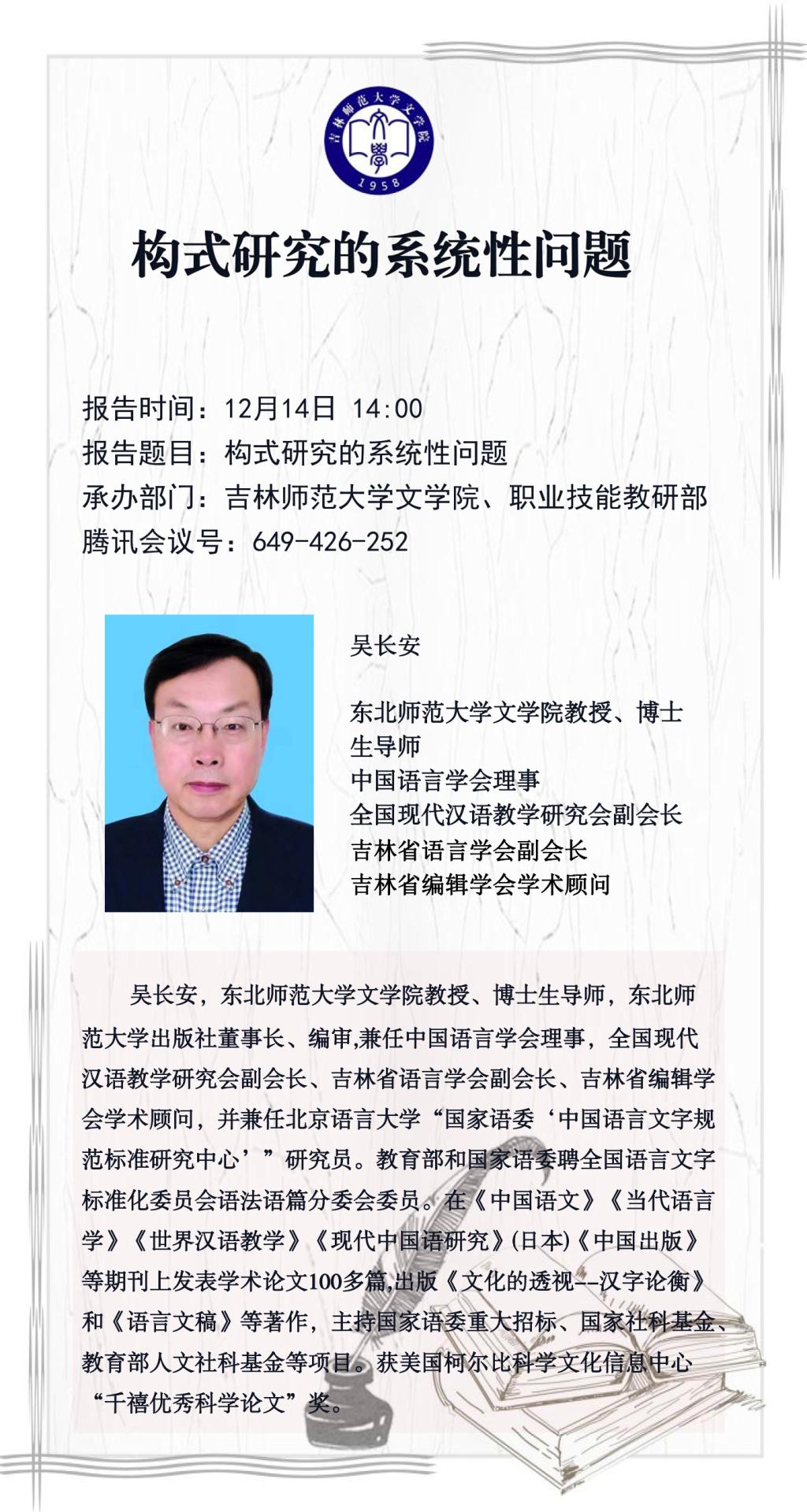 【讲座预告】构式研究的系统性问题