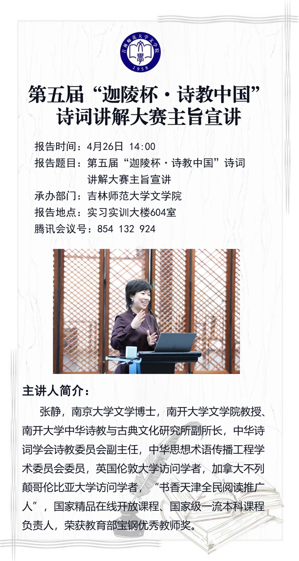 【讲座预告】 第五届“迦陵杯·诗教中国”诗词讲解大赛主旨宣讲
