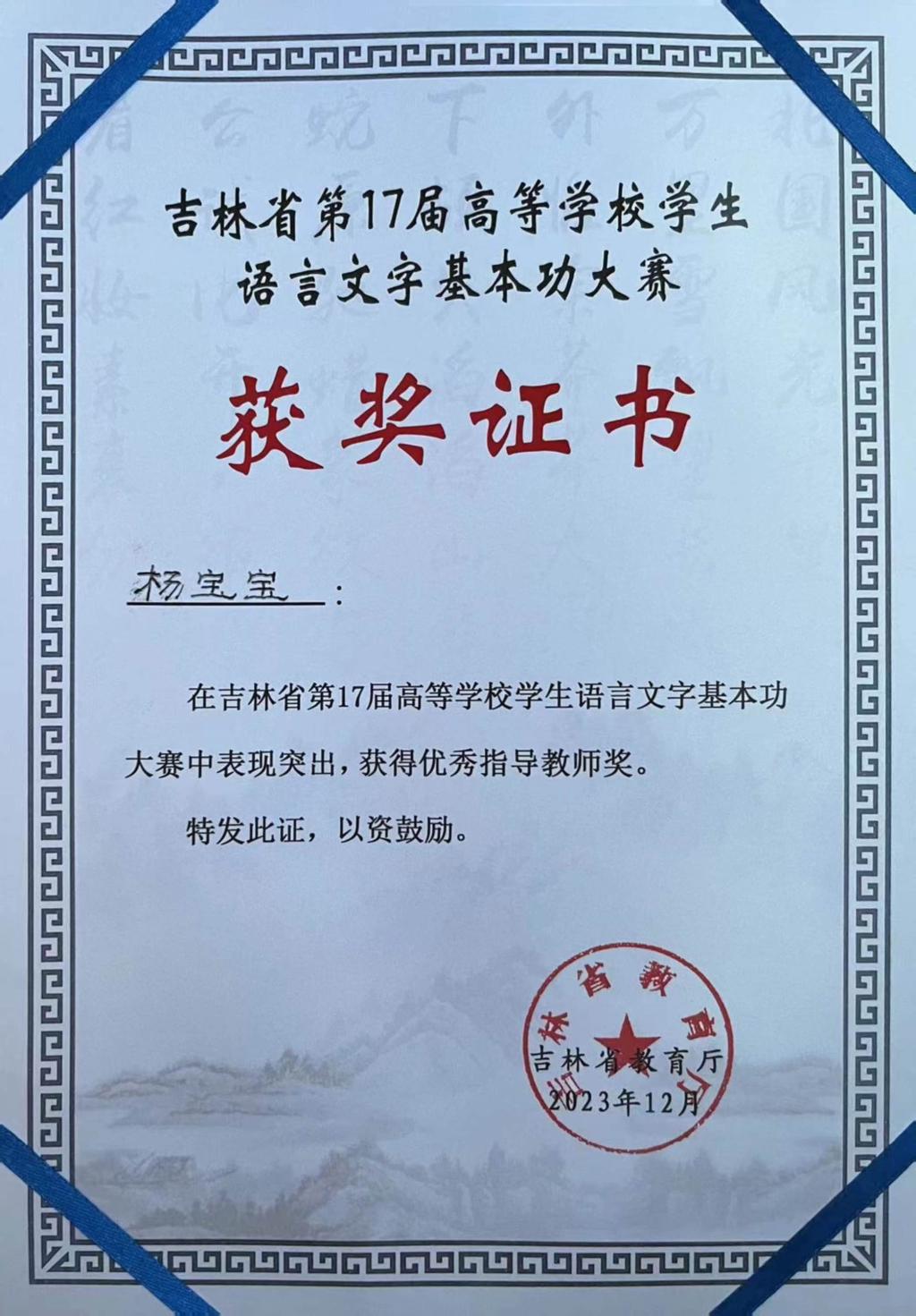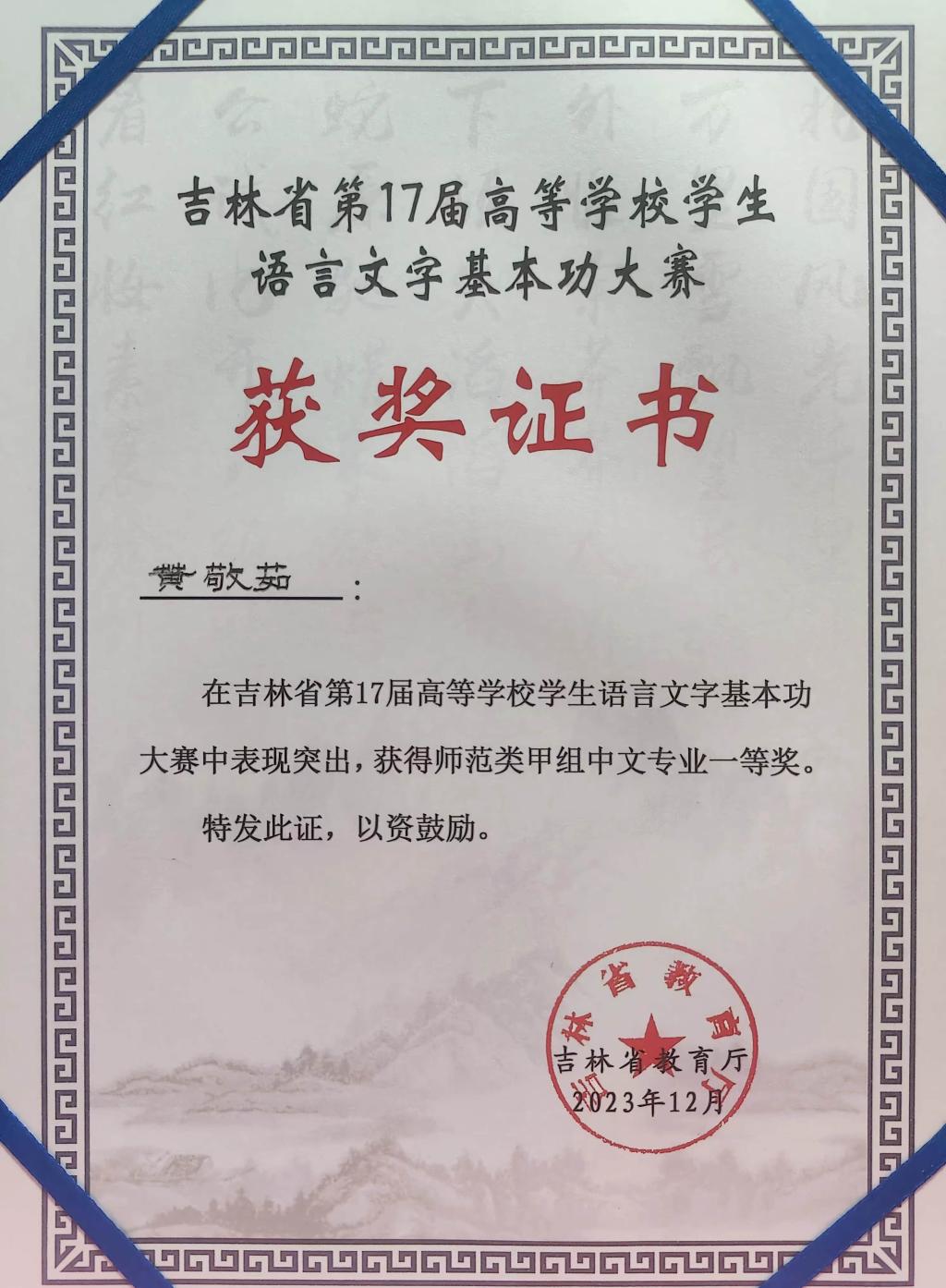 12月3日,由吉林省教育厅、吉林省语言文字工作委员会主办,吉林省普通话培训测试中心、吉林教育电视台承办的“吉林省第17届高等学校学生语言文字基本功大赛”,在吉林388vip太阳集团长春校区落下帷幕。在此次大赛中,我校获得师范甲组团体一等奖。其中我院黄敬茹同学在本次大赛中表现突出,获得师范类甲组中文专业一等奖。我院杨宝宝老师荣获优秀指导教师奖。