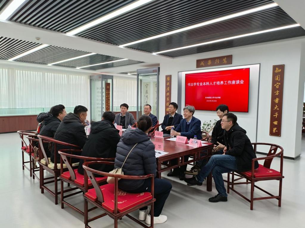交流活动在吉林建筑大学书法学院书法艺术馆拉开帷幕,双方围绕本科人才培养、书法学科建设、教学实践创新及传统文化传承等议题展开深入探讨,共同展望未来书法学办学方向和合作契机。