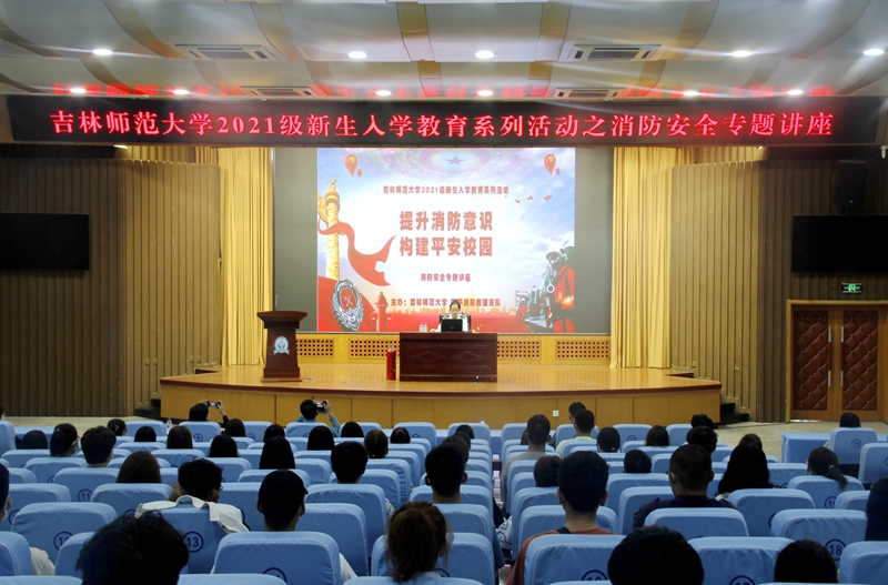 9月17日,学校邀请四平消防救援支队常鹏同志以《提升消防意识,构建平安校园》为题为2021级新生讲授消防安全知识。培训采取线上和线下相结合的方式进行,相关部门负责人、全体2021级新生4000余人参加培训。