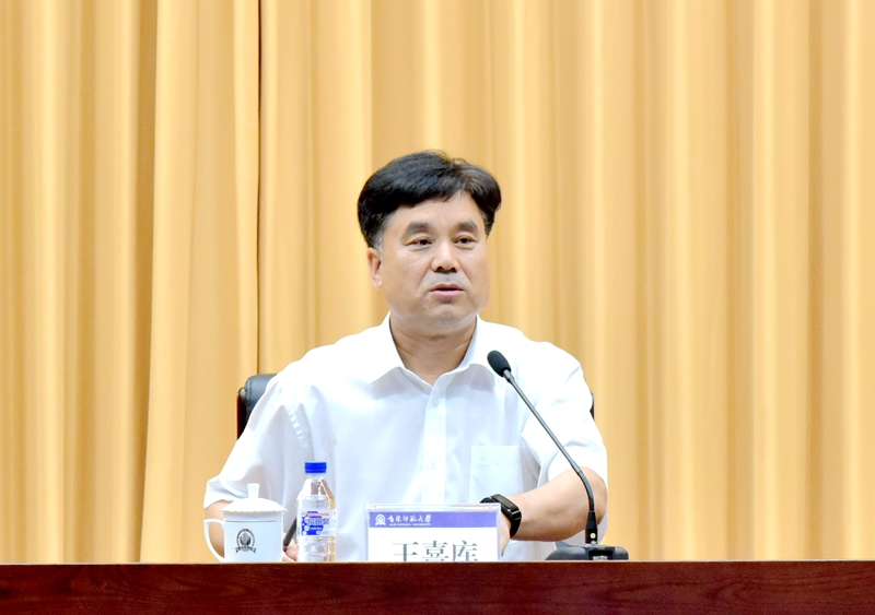 7月9日,学校在图书馆报告厅召开2021年暑期重点工作部署会。校党委书记王喜库,校长杨小天,党委副书记祖国华、刘万民,党委常委、纪委书记、监察专员侯奎岩,党委常委、副校长李海波、曲殿彬、张作岭、车广波,副校长赵经武出席会议,全校副处级以上干部参加会议。车广波主持会议。